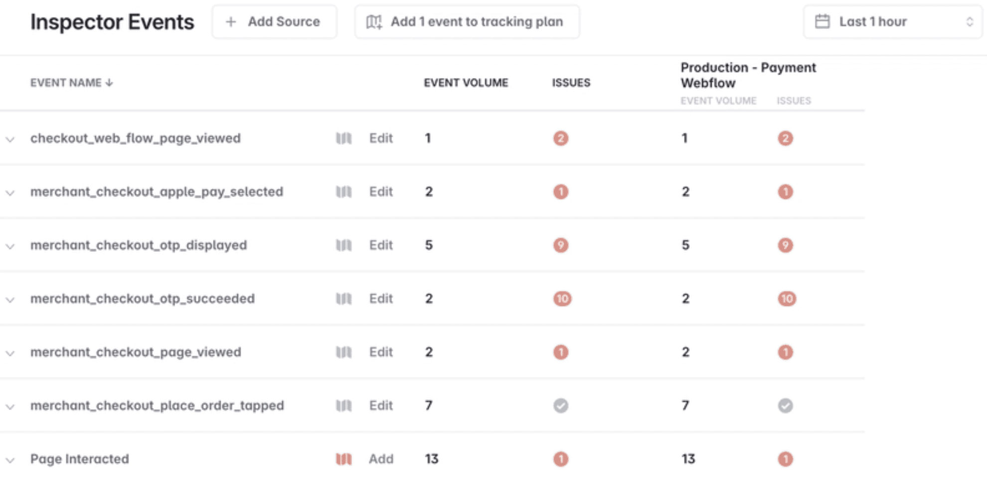 No automated validation: We had no way to systematically check that frontend tracking had been implemented correctly. Validating events in Segment’s debugger was manual, time-consuming, and especially painful for complex features like Super Credit with many different paths.