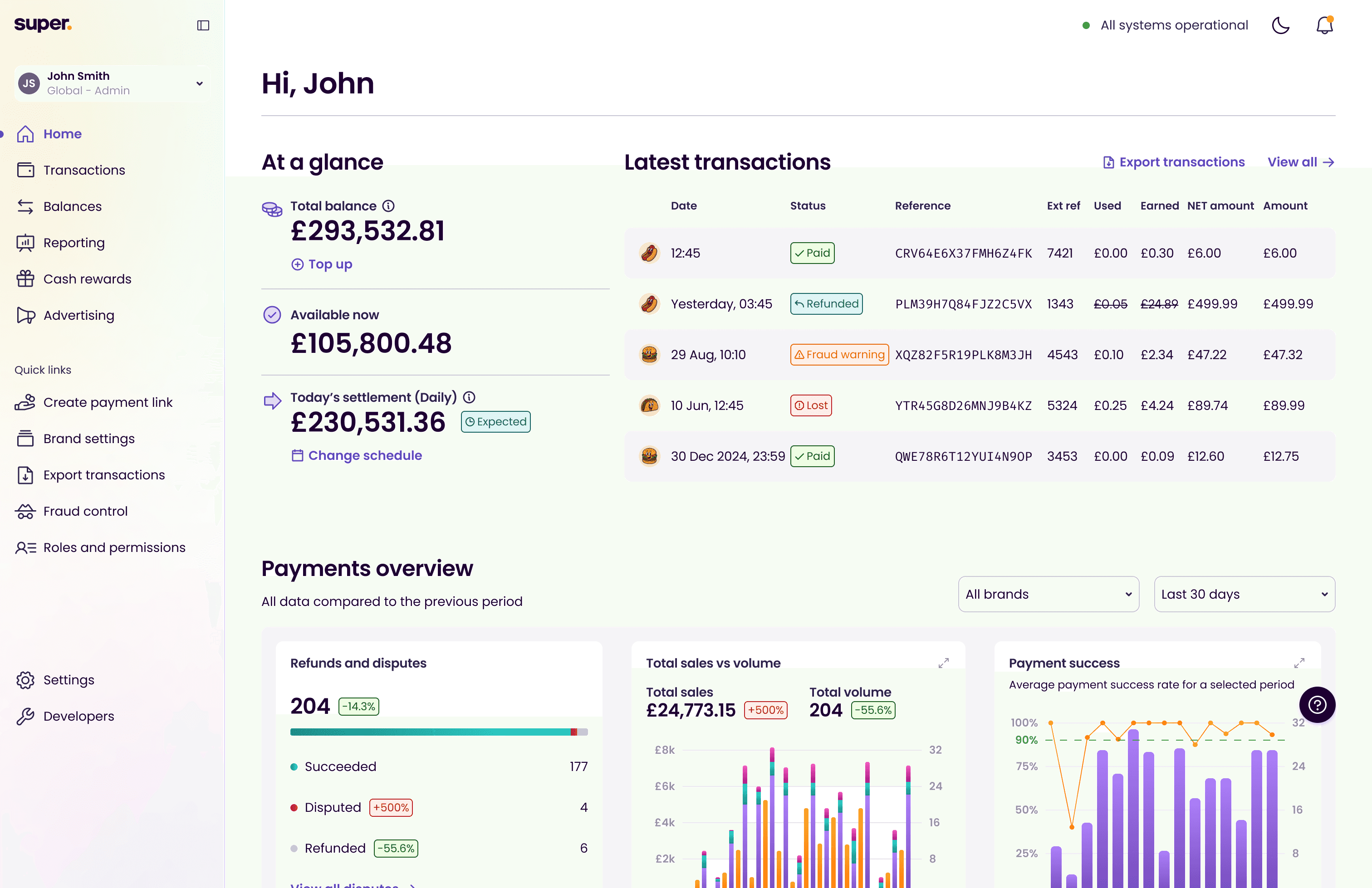 Super Payments Limited is a private limited company with company number 13903817. Open banking payments are powered by Yapily Connect Limited and Modulr FS Limited. Yapily Connect Limited is authorised and regulated by the UK Financial Conduct Authority under the Payment Services Regulations 2017 (Firm Reference 827001). Super Payments Limited is a distributor of Modulr FS Limited, a company registered in England and Wales with company number 09897919, which is authorised and regulated by the Financial Conduct Authority as an Electronic Money Institution (Firm Reference Number: 900573) for the issuance of electronic money and payment services. Your business account and related payment services are provided by Modulr FS Limited. Super Payments Information Security Policy is available on request. Whilst Electronic Money products are not covered by the Financial Services Compensation Scheme (FSCS), business funds will be held in one or more segregated accounts and safeguarded in line with the Electronic Money Regulations 2011 - more information. Card payments and business accounts are powered by Stripe Payments UK Limited. Stripe UK Payments Ltd is authorised and regulated by the Financial Conduct Authority (Firm Reference: 900461) as an Electronic Money Institution (Firm Reference Number: 900573) for the issuance of electronic money and payment services.