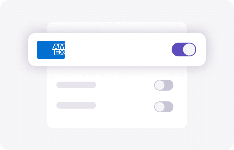 Increase your payment coverage with paid add-ons like Amex and corporate cards.
